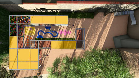 Sensory Loop è uno spazio pubblico all'aperto progettato per unire esposizione artistica e interazione sensoriale, trasformando un percorso in un'esperienza unica e coinvolgente. La struttura, realizzata con tubolari metallici modulari e leggeri, è pensata per integrarsi armoniosamente con l'ambiente circostante, creando un itinerario fluido e organico dove ogni sezione stimola uno o più sensi. Le varie parti della struttura ospitano istallazioni che alternano arte, giochi interattivi ed elementi sensoriali, invitando i visitatori a esplorare e scoprire. Nella sezione olfattiva, una serie di vasetti appesi alle struttura accoglie piante aromatiche e fiori profumati, offrendo un viaggio olfattivo che evolve lungo il percorso. La sezione visiva presenta pareti attrezzate con teli per appendere opere, fotografie o istallazioni, mentre tende colorate filtrano la luce naturale, proiettando giochi di colore e ombre che trasformano l'ambiente in un'esperienza visiva sempre diversa. La sezione uditiva, invece, si caratterizza per la presenza di canne di bamboo ed elementi metallici sospesi, progettati per essere suonati dai visitatori, creando melodie spontanee che interagiscono con il contesto naturale. Completa il percorso la sezione ludica, con pareti dotate di cubetti rotanti, dove immagini e messaggi nascosti, si rivelano, coinvolgendo sia adulti che bambini. Il progetto si distingue per l'uso di materiali sostenibili come legno, bamboo e tessuti riciclati.